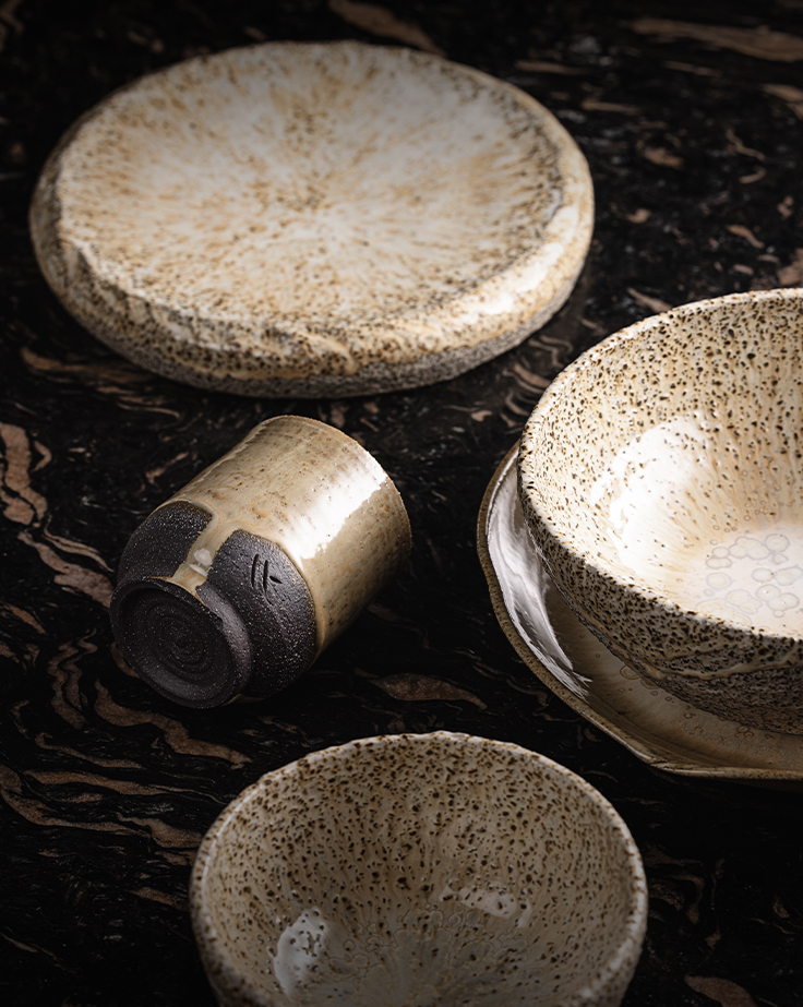 BOTH INDEPENDENTLY AND IN CLOSE COLLABORATION WITH RENOWNED CERAMIC STUDIOS, WE DESIGN UNIQUE PIECES THAT PERFECTLY HARMONIZE WITH OUR CULINARY CREATIONS.